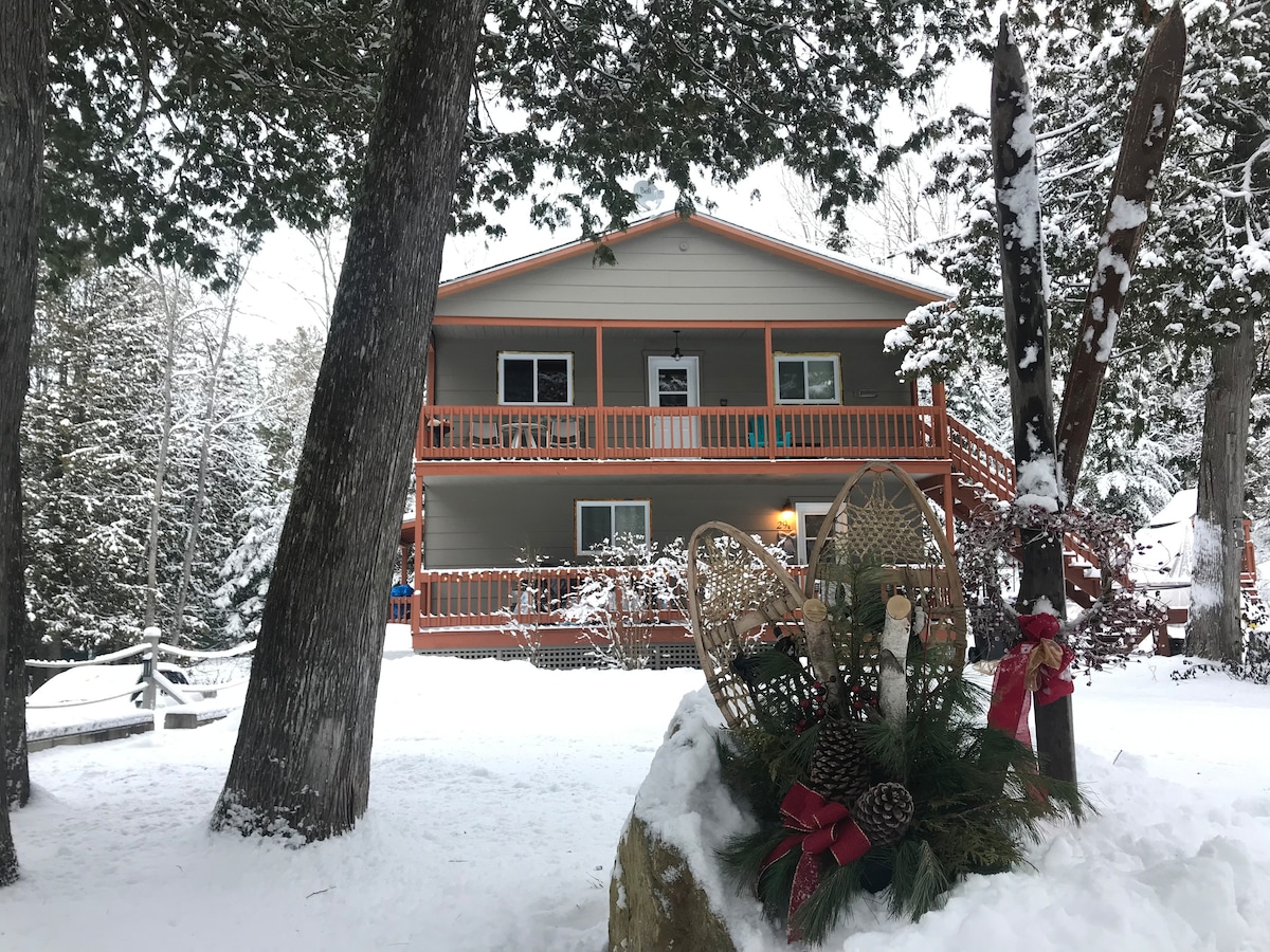 Jump into fall with a cozy chalet in a complete nature immersion! Sunsets from the hot tub are the perfect way to enjoy the outdoors and stay cozy in the process. Listen to the sound of the creek on the property as the snow melts and allows for beautiful walks around the area. There’s high speed internet (50 mbps) with unlimited data so you can stream whatever you like, or work remotely! All the comforts of home! Private dock (May-Aug) and 2 canoes included!