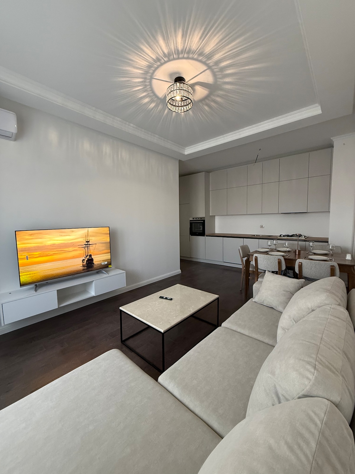 Welcome to my stylish apartment on the 9th floor with elevator, located in the most central and prestigious part of Baku. Just 2 minutes from the famous Baku City Circuit, it is surrounded by landmarks, luxury hotels, shopping malls, and the waterfront promenade. From the panoramic windows and the large balcony you’ll enjoy breathtaking views of the Caspian Sea, the city skyline, and the Formula 1 track in full — as if the race unfolds right beneath your eyes.