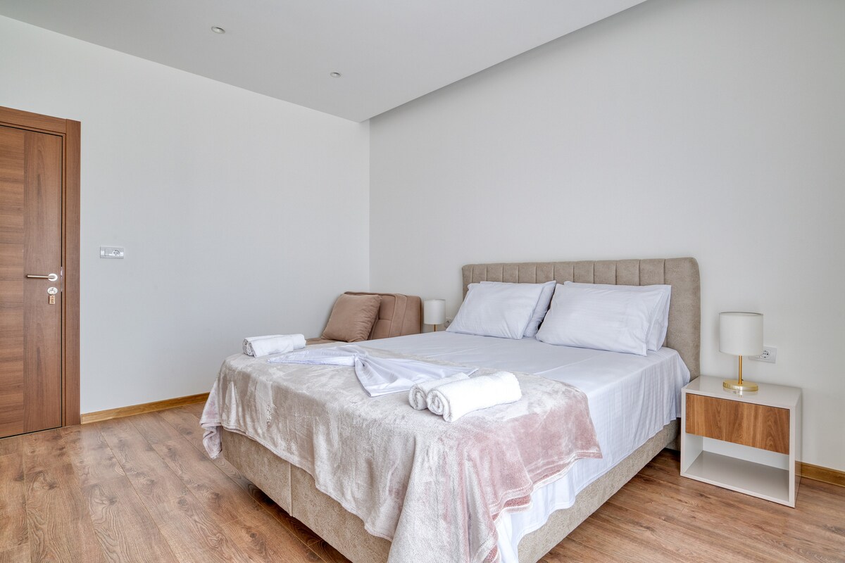 Apartament i qetë për dy persona – Pamje mahnitëse & komoditet maksimal I përsosur për dy persona, ofron një atmosferë të qetë dhe relaksuese, me pamje panoramike që ju mahnit çdo ditë. Hapësira është e mobiluar me shije, duke kombinuar stilin modern me ngrohtësinë e një shtëpie të vërtetë. ✔ Kuzhinë moderne me pajisje të reja ✔ Dhomë gjumi e rehatshme për pushim maksimal ✔ Ballkon privat për momente relaksi me pamje fantastike ✔ Ambient i qetë.