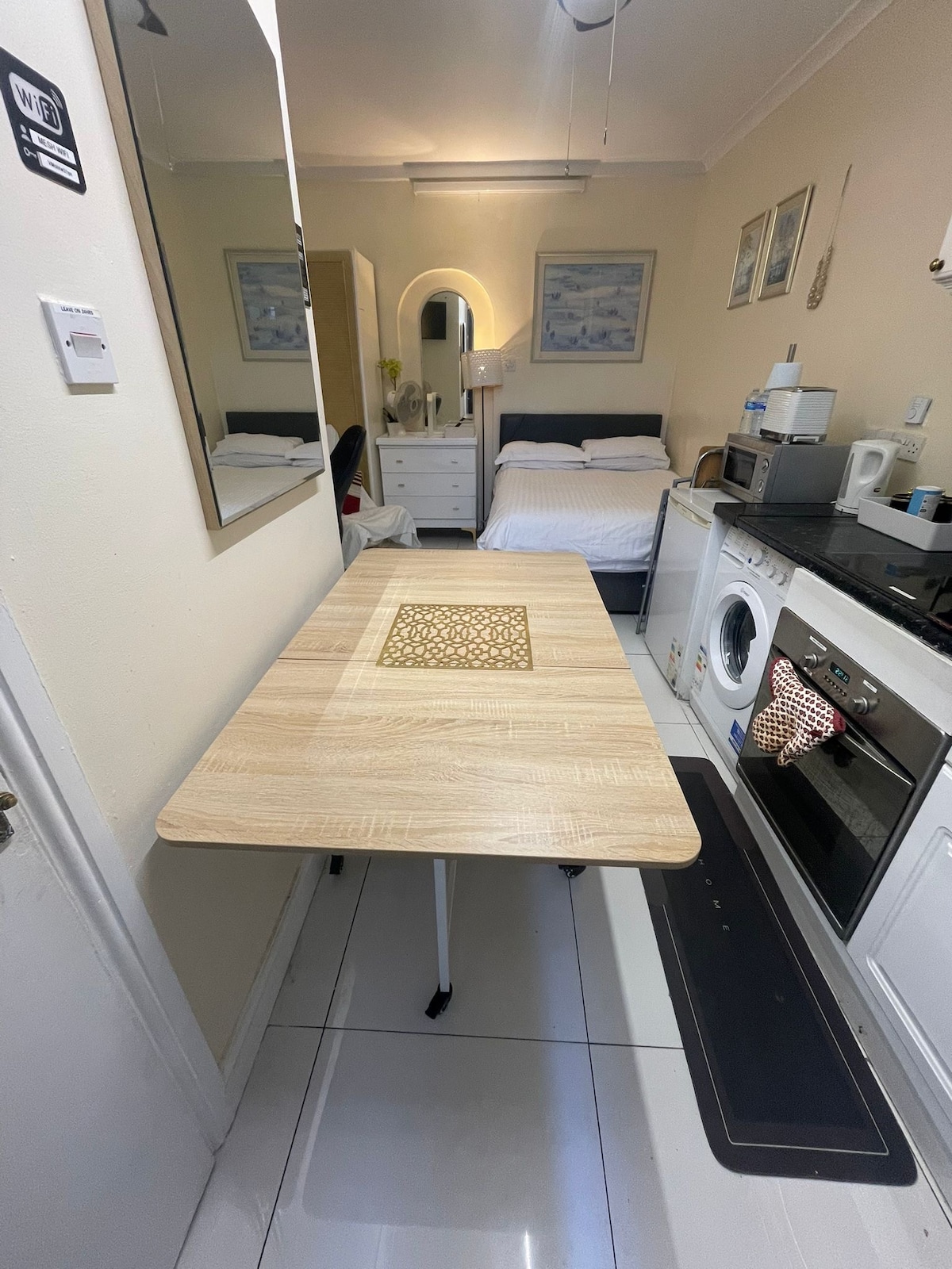 Self contained studio apartment that has its own kitchen and bathroom. Located in a Victorian building. Situated on the first floor to the rear of the building. Acton is a perfect location from which to explore London from, only an 8 minutes walk to Acton Town tube station and 20 minutes from Acton Station to Piccadilly Circus in central London. Just a few minutes walk from Churchfield road and a multitude of artisan bakeries, coffee shops, restaurants and lively bars.t