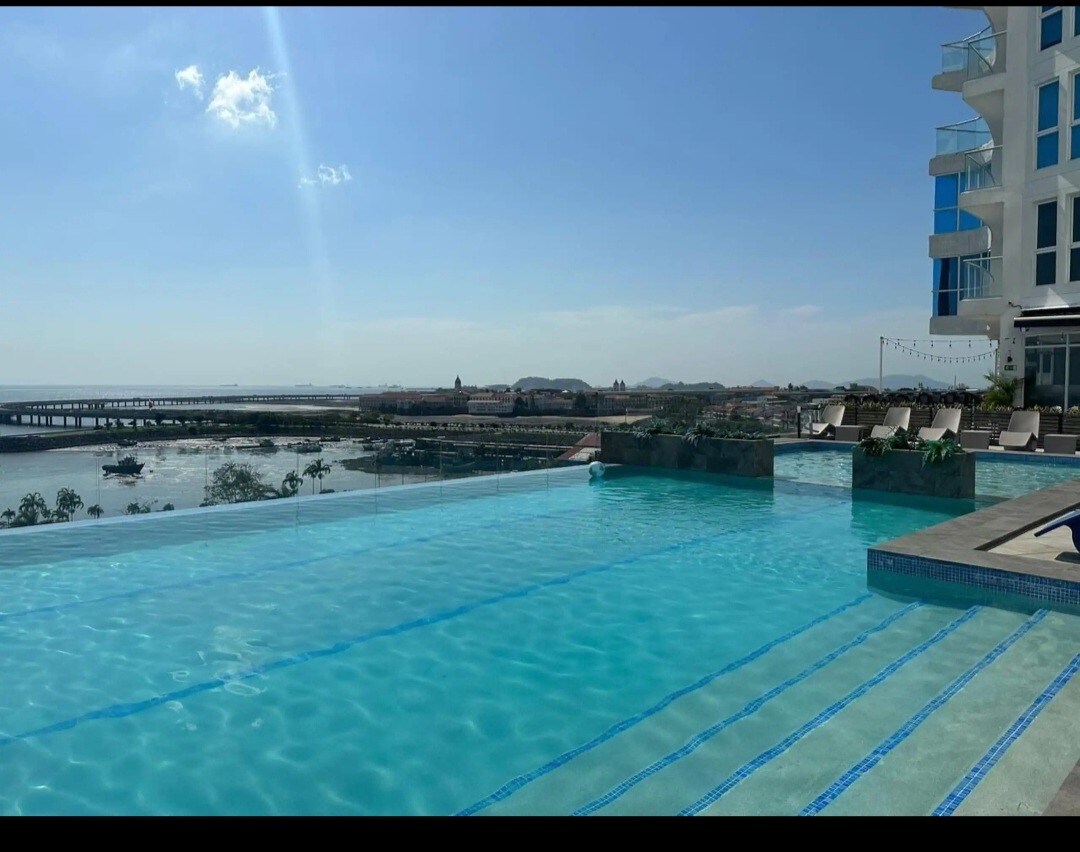 Family apartment for brand new in front of the waterfront of Panama, WI FI 150 Mbps, NETFLIX, PRIME VIDEO, MAX, high floor, elevator, air conditioner, infinity pool, private parking, metro station 5 min walk running to Tocumen airport, washing center, water heater, kitchen, great view and location........ IMPORTANT: During the month of July 2025 there is no gas service, therefore you will not have stove, dryer and hot water service.