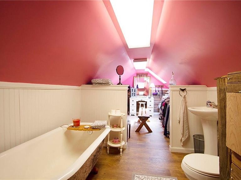 You won’t want to leave this charming, one-of-a-kind room. This suite is called the painter suite it is on the second story on the left at the top of the stairs. It is a beautiful view of the rural countryside and has its own fireplace. Breakfast for two is included in the room rate. The bathroom is attached but is Jack and Jill style. Please note this detail when you were ordering your reservation.