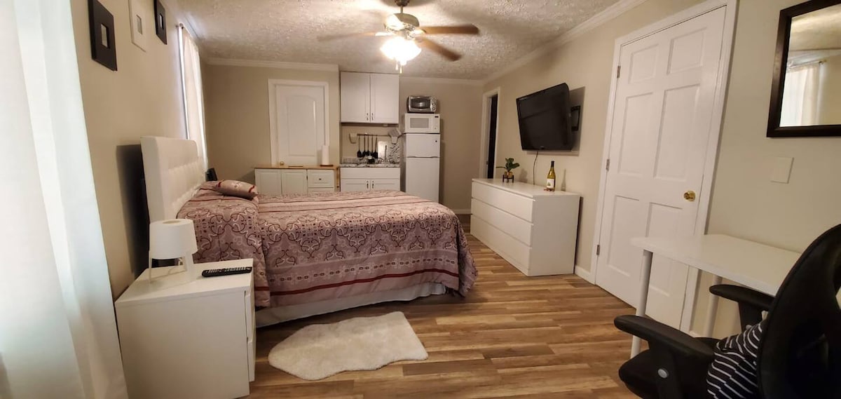 In rural Alpharetta, a cozy and modern 1br/1ba efficiency on the outskirts of the highly sought after equestrian Milton community. Looking to get away for a weekend, a couple seeking to reconnect, or on vacation? We are close to the famous Greenway for biking, hiking, walking and running. There are plenty of places to eat, shop, and experience the beauty of Milton/Alpharetta all within a 4 to 20 minute radius of our location. We have an available roll-away bed if needed, the cost is $10.