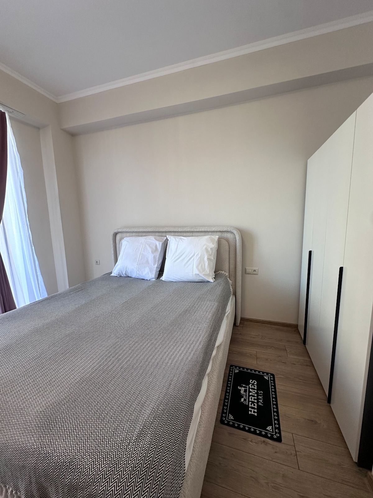 This elegant and cozy studio apartment offers the ideal blend of comfort, style, and convenience — perfect for solo travelers, couples, or business visitors. Enjoy your morning coffee or evening wine on the balcony, with floor-to-ceiling windows and soft purple curtains adding a luxurious touch.