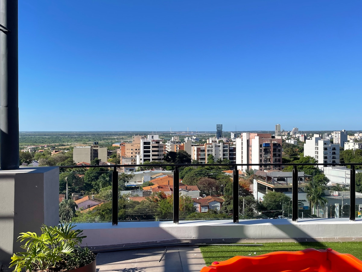 Beautiful apartment with pool, located near parks and shopping centers. Very bright and with a beautiful view of the city of Asunción. Rooftop with barbecue and pool Grill in the apartment Laundry room (rooftop) -Free parking for 1 car Excellent views of the city and sunsets 24-hour security guard and doorman Behind the central bank Close to Shopping del Sol and Paseo la Galería Close to Parque Salud