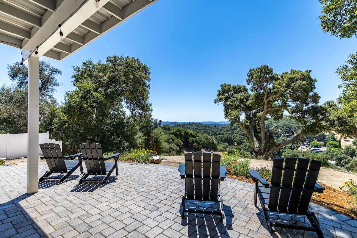 Come unwind on this gated 4.5-acre retreat, newly built in 2019! Located in the heart of the Templeton Gap wine region — with wineries just down the street — you’ll be minutes from both downtown Templeton and Atascadero. Relax on the spacious 500 sq. ft. patio and take in the sweeping views while enjoying a BBQ, sipping local wine, playing lawn games, or soaking in the hot tub under the stars. Inside, the game room offers darts, pool, ping pong, Connect 4, Pop-A-Shot, and more for family fun!