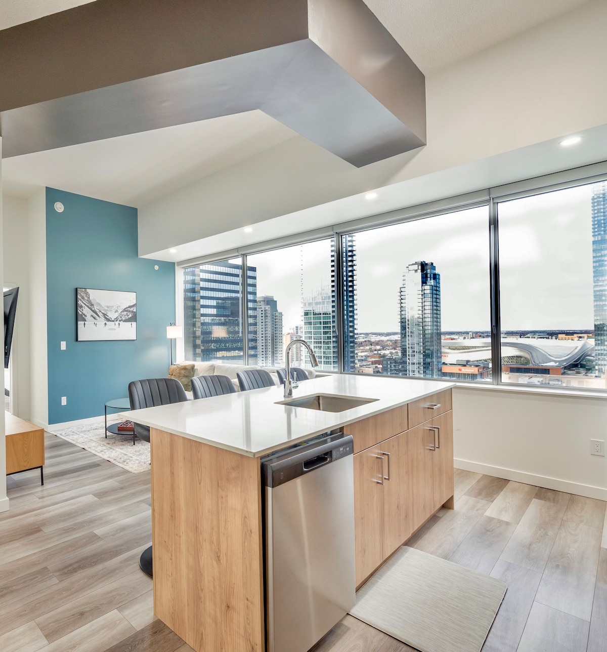 Welcome to your city escape. This stylish 1BR condo blends comfort and modern living with a cozy sectional, large windows, and smart TV. Cook in the sleek kitchen with stainless steel appliances and island seating. Rest easy in the queen bedroom with fresh linens and city views. Head up to the rooftop lounge for BBQs, dining, and skyline sunsets. With WiFi, in-suite laundry, and a central location near shops, dining, and nightlife, it’s perfect for business or leisure.