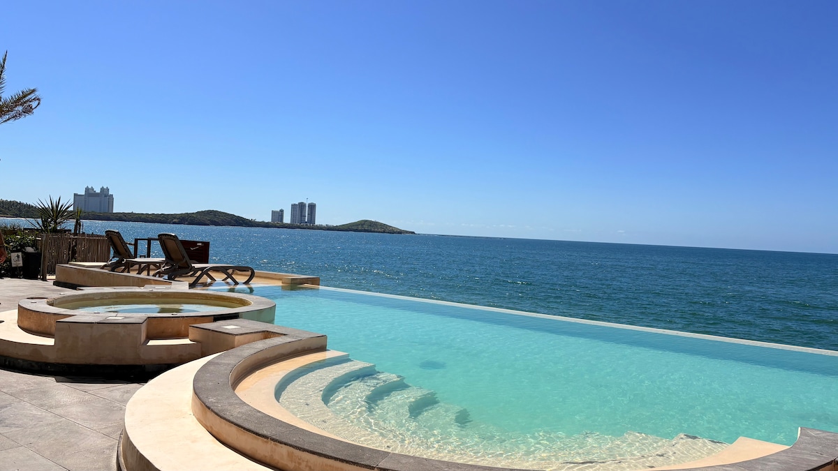 🌊 Relájate y disfruta con toda la familia en este alojamiento a pie de playa. ✨ Respira tranquilidad mientras contemplas una espectacular vista al mar desde la alberca infinita 🏖️. 🎾 Juega pádel, haz ejercicio en el rooftop 🏋🏻♀️ o simplemente desconéctate y relájate. 📍 A solo 15 minutos del Malecón de Mazatlán. ¡Nos encantará recibirte! 🏡💙