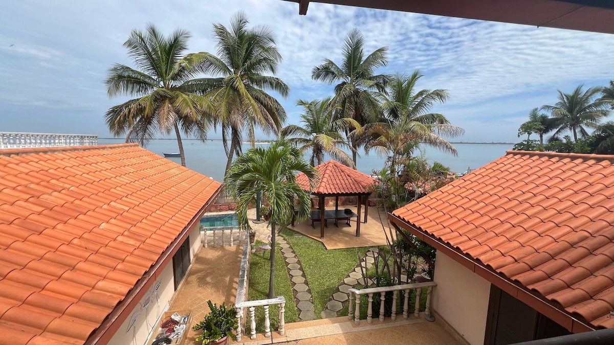Mussulo is a peninsula located south of Luanda, Angola , it's a landform created by sediments from the Cuanza River. After a 15 minutes boat ride through a beautiful clear water from embarcador do Museu dos Escravos you arrive at your accomodation. You will be welcomed by an amazing open concept wooden beach house, filled with natural light, making it the prefect destination for a great vacation.