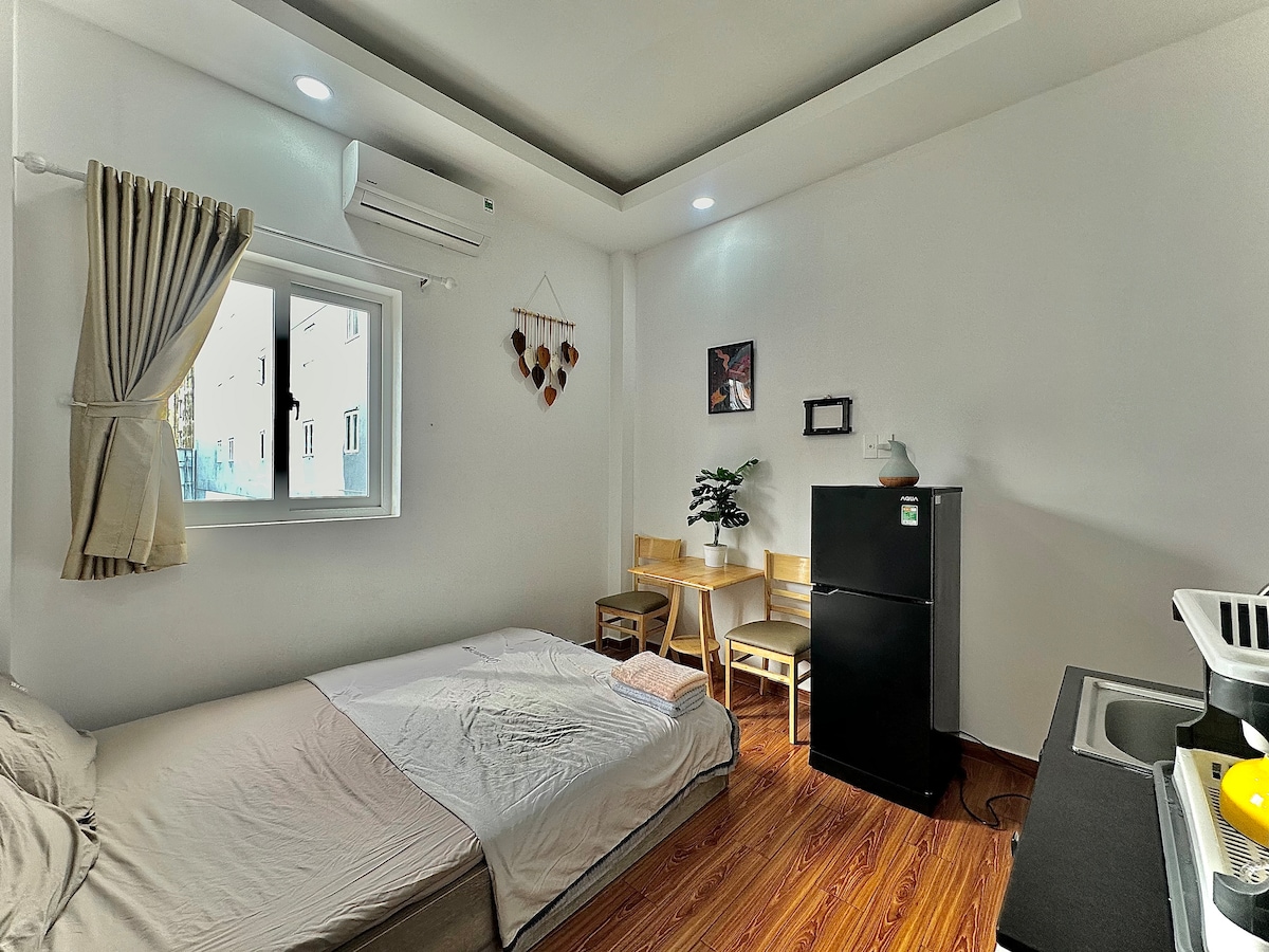 Studio apartment with unique design located in a lovely alley in Saigon Center. The studio is located on the 2nd floor of a townhouse, of which the 1st floor is the lovely BeanThere cafe. It only takes a few minutes to reach attractions and nightlife activities. Besides, there is also a kitchen to cook basic meals. One breakfast (01 food and 01 drink) / guest / night in Beanthere cafe. We offer free housekeeping for bookings longer than 4 nights. If needed, you can notify 1 day in advance.