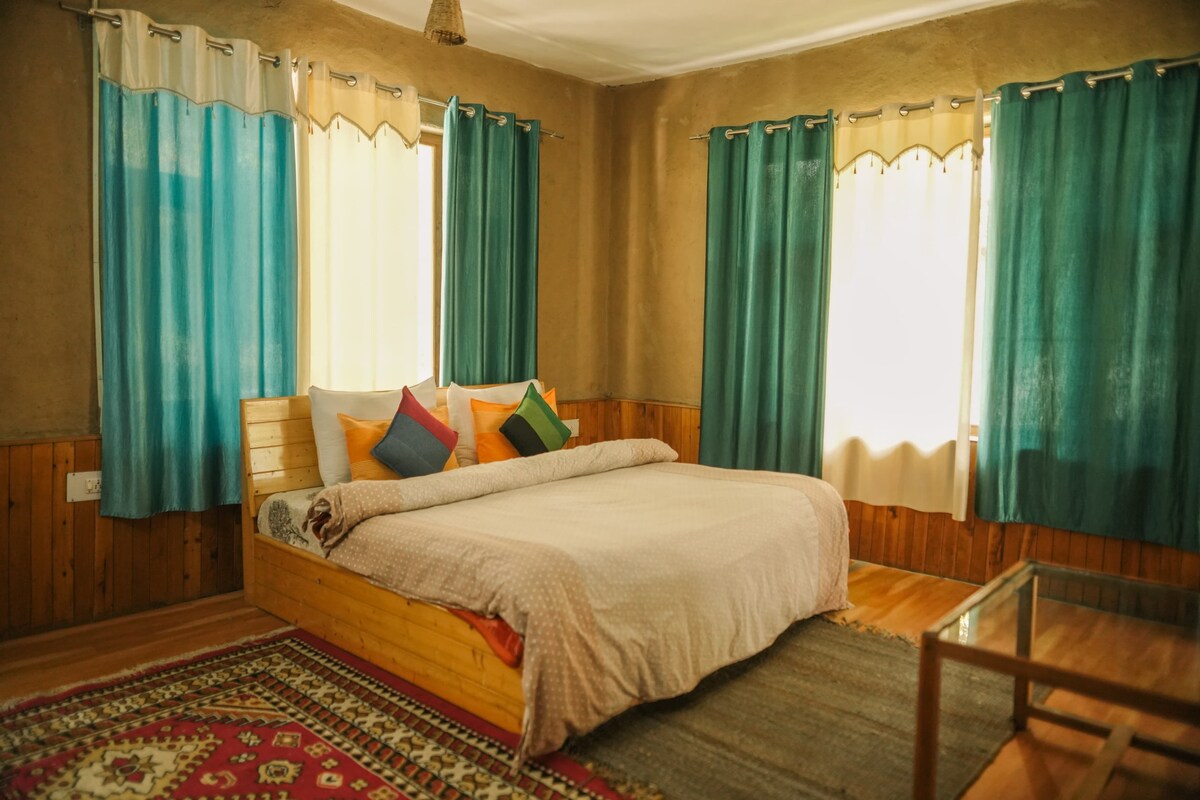 A cozy earthen home with a rustic vintage vibe. A place for the experience of exploration, reconnection with nature and slow-conscious living. Our Earthen home is located on top of a mountain within Jibhi valley and in between a dense Deodar forest offering a panoramic view of Pir-Panjal and Dhauladhar ranges, With a beautiful landscape that changes with every passing season. Situated in the quaint village of LUSHAL, our cottage is away from the crowd and hustle of mainstream tourism.