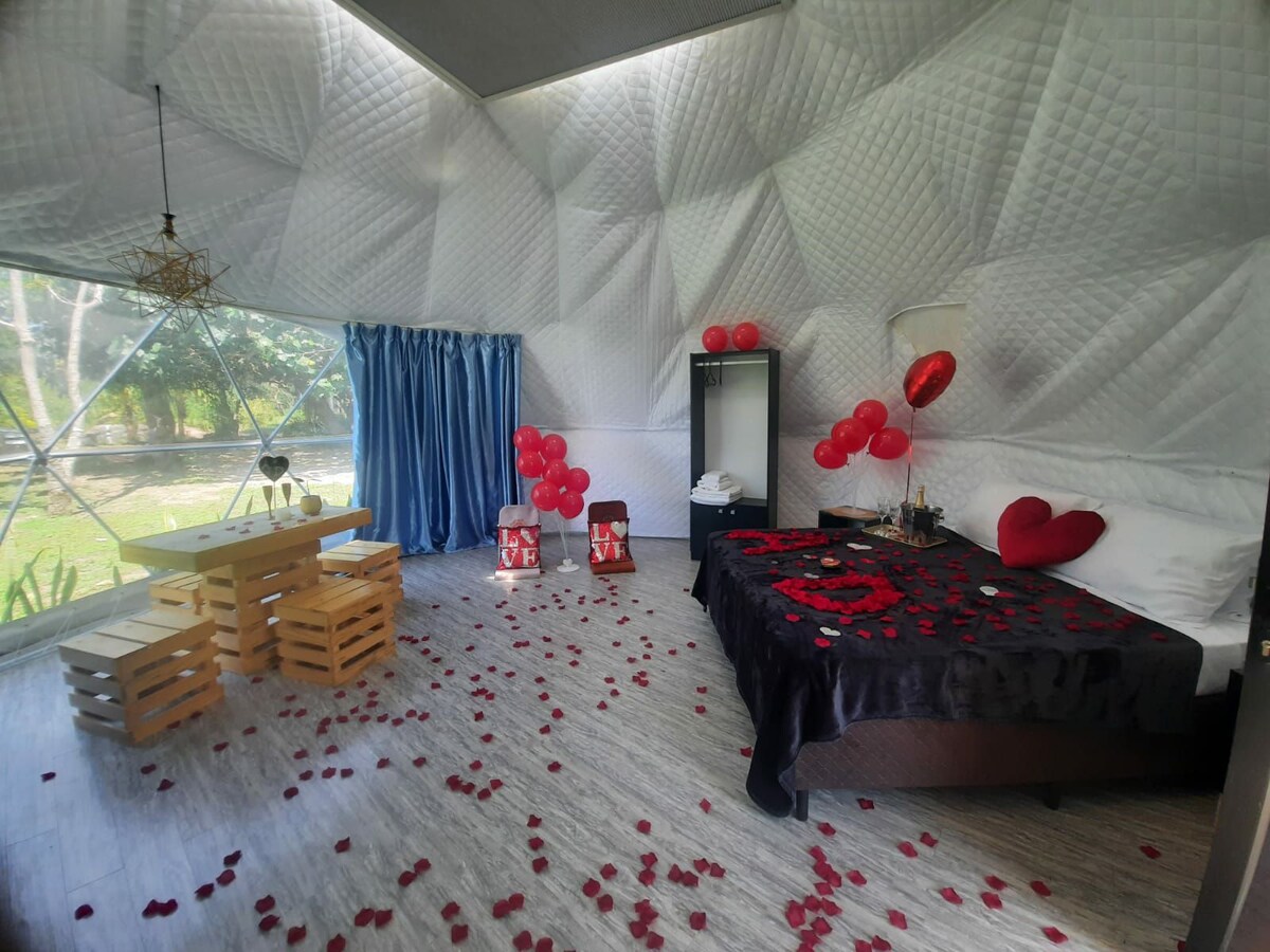 Urubo glaming is a country place to escape the routine and live an unforgettable experience. 🏞️🌿 We have 3 domes that have the capacity of 4 people 👫👫per dome all with a beautiful view as they are located on a hill and below is a duck pond that reveals a peaceful view. Urubo glaming has: Infinity edge pool 🏊 Children's parks ⛹️🤸 roofed cabins 🛖 fire pit🏕️ Barbecue grill 🫕🫕 Court 🥅⚽ Etc.