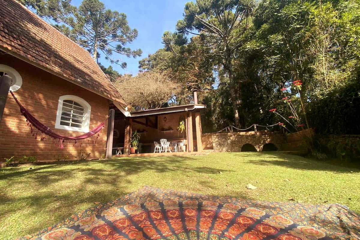 A charming and private getaway in Atibaia! The house is in the back, with a separate entrance and covered and automatic parking. Check-in and check-out can be 100% contactless (via key lockbox), but I live in front, so it's possible to cross paths in the garage. The backyard has a pergola with a hammock, an outdoor fireplace and many plants. 5 minutes from Edmundo Zanoni Park, close to market, bakery and pharmacy. Comfortable, with 1 queen bed and 1 single box.