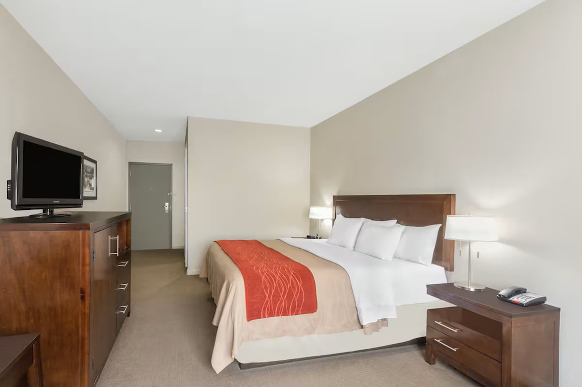Just minutes from charming downtown Columbus, this hotel blends comfort with small-town hospitality. The room features a king bed and a bright, relaxing layout. It’s a great choice for couples or solo travelers seeking space and convenience.