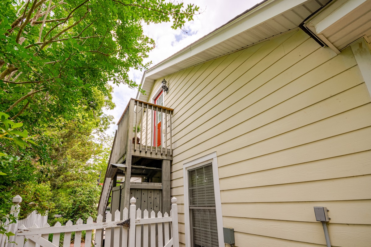 "Private Entrance" 2nd-story STUDIO w/lots of windows. Wood floors, central AC/heat, 1/2 bath, queen bed with new mattress, fridge, Krueig, microwave, WIFI, TV, closet space, ROBES FOR PRIVATE OUTDOOR HEATED SHOWER and towels. Established neighborhood less than 2 miles from FSU and downtown; 1 block to Tallahassee Memorial Hospital. Restaurants under 1/2 mile! It is on our property and we personally clean the studio. Go Noles!