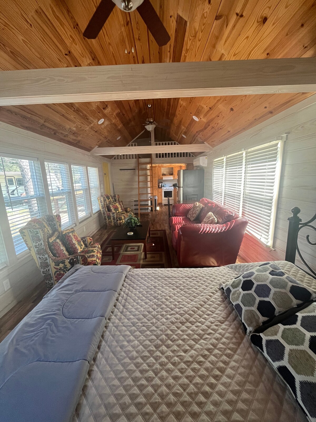 No cleaning fees! Our one & only peaceful, quiet golf cart friendly location conveniently between I-10/US90 yet the Caverns, Bear Paw river float, Merritts Mill Pond, Hinson Nature Preserve, Blue Springs and all shops, cinema, boat launches & restaurants within a 10 min drive. Golfing, beach, & airports within 1 hour. Modern cottage on a private 1/2 acre equipped with large smart TV's in both the living room and bedroom with Prime video.
