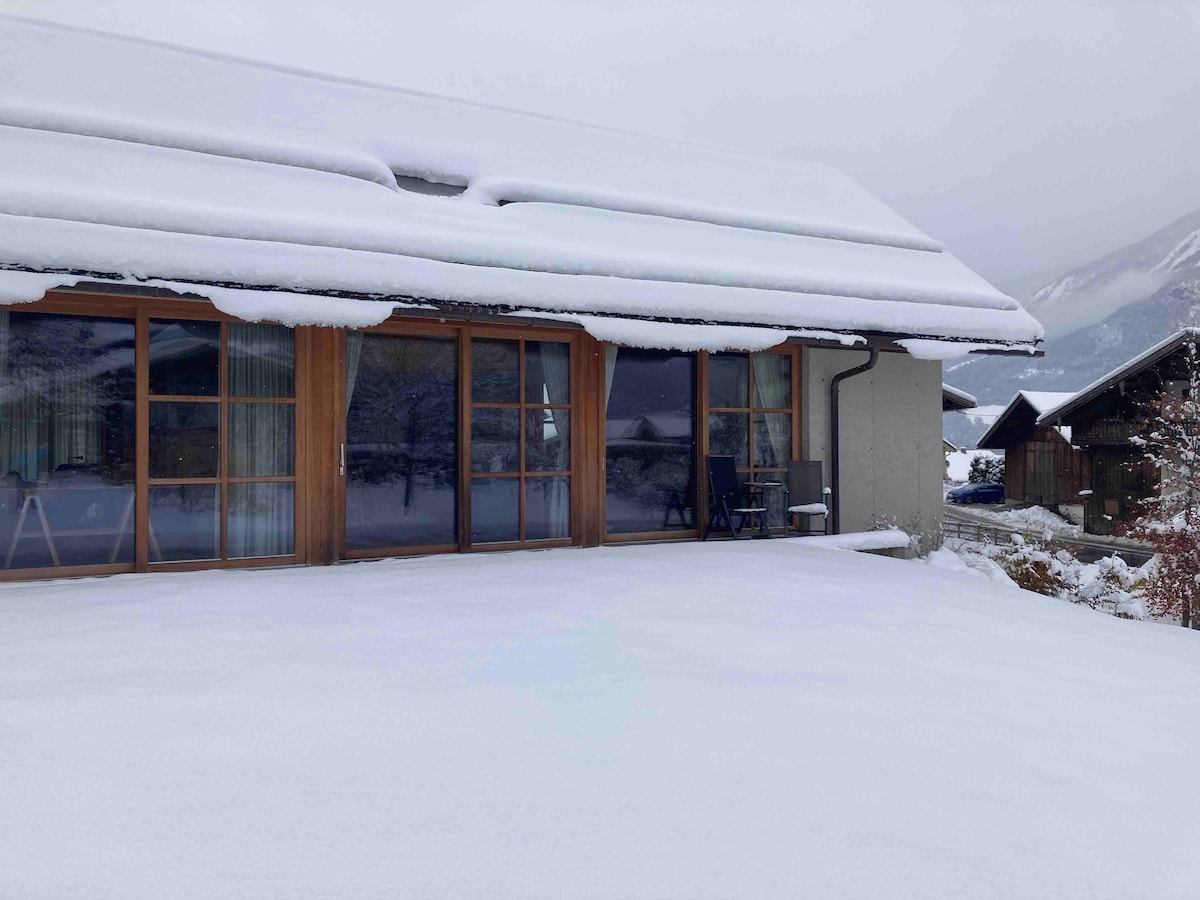 Situated on the outskirts of a Tyrolian mountain village this place offers you a wonderful-broad view. The apartment, lovingly combining tradition and modernity will let you calm down and recharge your batteries instantly. A closeby cable car enables you to all kinds of mountain sports in summer and winter. Yet- even those, who just "stay and relax" will feel at home. WIFI, TV, BT-boxes, parking space are available free of charge; for the Sauna we take a small feey. Kitchen is well equipped .