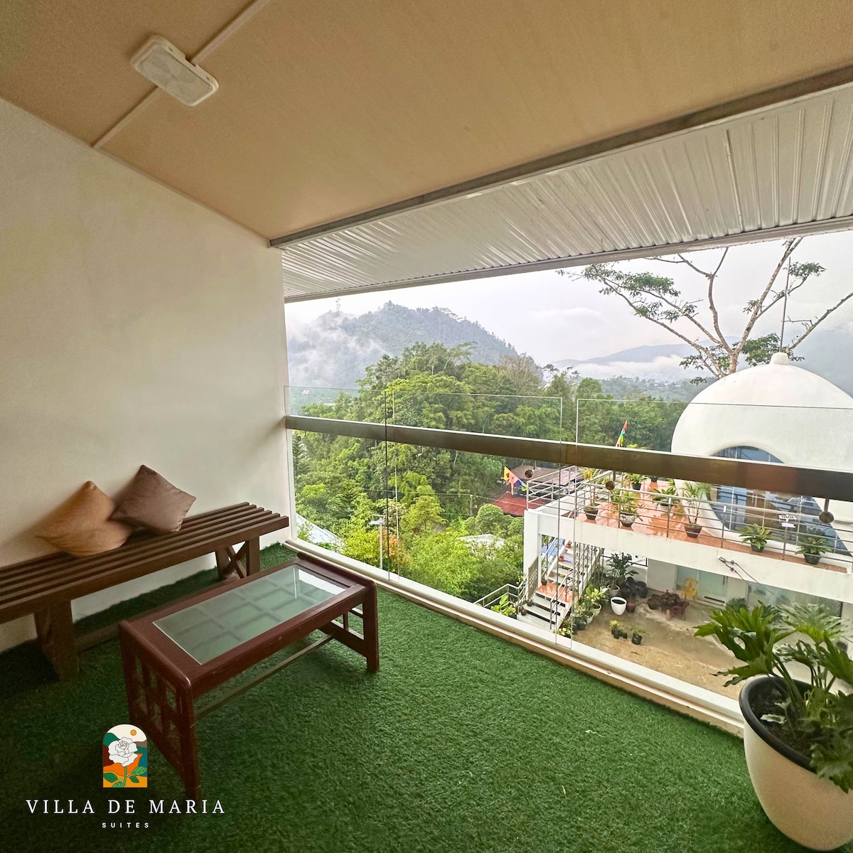 Emerald Suite is a spacious loft-and-dorm-style haven perfect for 12–15 guests. Enjoy cozy living and dining areas, a 43" Smart TV, and a refreshing hot & cold shower with complete toiletries and a hair dryer. Unwind on the big balcony or at your private coffee corner with stunning views of the chapel and sea of clouds. With free Wi-Fi, fresh towels, and access to Villa de Maria’s gardens, pond, and gazebo, this suite offers the perfect blend of comfort, space, and serenity.