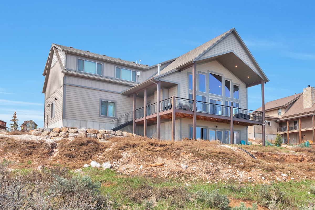 Beautiful home close to town. Nestled off of main highway with gorgeous views of Bear Lake. Short drive into town. Home is in a quiet area with trails and off road areas right out the back door. Drive-thru garage you will have full access to. Huge bonus room above the garage. Easy access to the lake. Master suite on main floor. 3 living areas with 65" flat screen smart t.v.s with Direct tv now. Loft upstairs your kids will love to explore. 2 washers and dryers for your use. STR License #015271