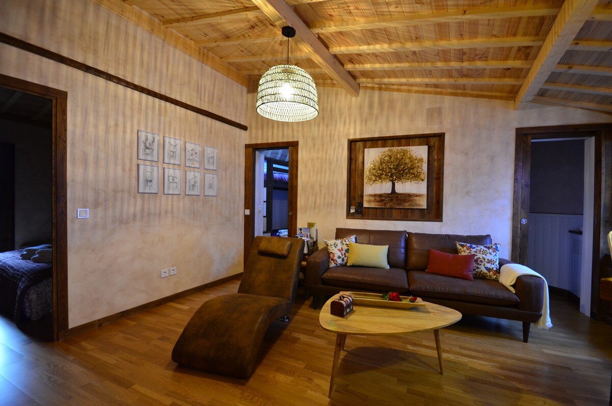 "Cuenta Hasta 3" is a country house built on the foundation of an old cattle house. This is a new accommodation with luxury equipment so that the rural is outside the doors. Inside you can enjoy a two-seater whirlpool, video projector with 5.1 sound, paintable wall, wifi, Rituals amenities, free Nespresso coffee, etc. In addition, it has a private garden with barbecue and bicycles. Tourism Code CRA AV 1002 03/21/2012