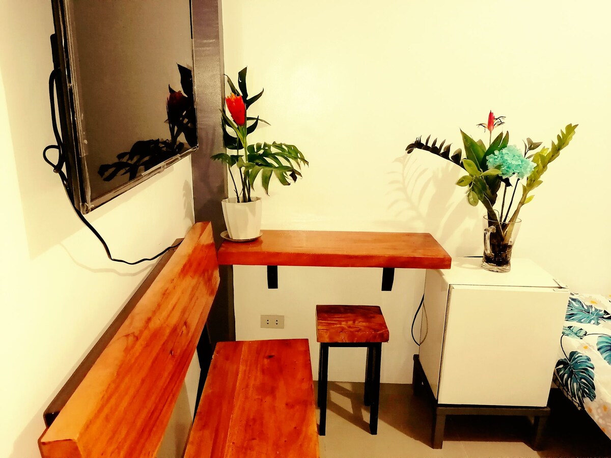 "Welcome to D'Rustic Haven-condotel! We're happy to assist you during your stay. If you need anything, please don't hesitate to reach out – my contact number is in the welcome guide. Our location offers easy access to bars, restaurants, malls, and more. Note that we don't provide free parking, but fee-based parking is available 24/7, managed by a third-party provider. Also, please be aware that the pool is under maintenance every Monday. Enjoy your stay!"