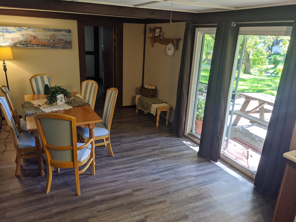 Entering the front door you'll feel right at home. Full Bathroom with walk-in shower and amenities. Living Rm and separate Reading/Work Den with 60" HD Roku TV. Complete Fully Functional kitchen. An additional Twin or Queen size air bed, set up with bedding, is available by request to sleep a total of six. Conveniently close 2 min. from Beloit Hospital, Grocery Store, Drug/Convenience Stores, restaurants, bike/hiking paths along the scenic Rock River, Beloit College and Downtown activities.