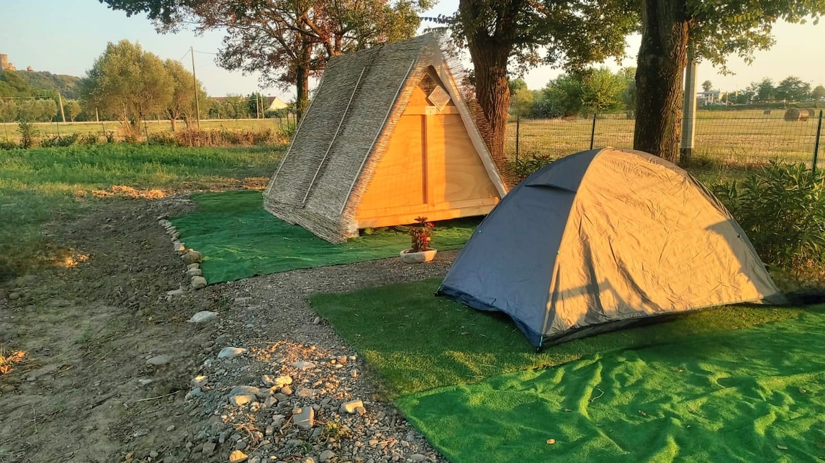 Very comfortable and welcoming Glamping Comfort Tent of 19 square meters, private, hosting up to a maximum of 2 people with wonderful Sea View and pool view inside our romantic residence with shared bathrooms and showers, thermal pools with whirlpools, car parking, barbecue area, large green spaces. Our tents are all new, cozy, comfortable and above all clean and fresh.
