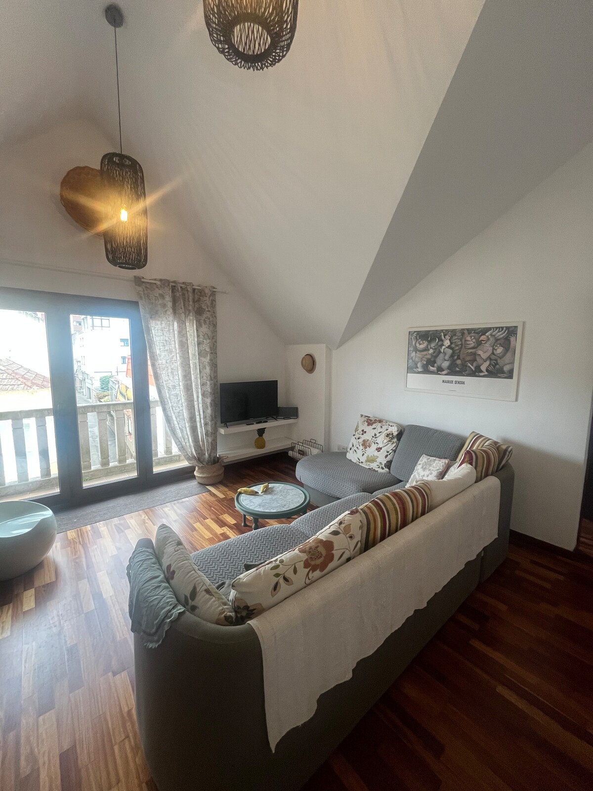 A spacious and bright penthouse, ideally located a few meters from the beach and downtown, so you can enjoy the convenience of getting around Cangas without having to take the car. The apartment is located on a very quiet pedestrian street behind the promenade, where you will find bars, restaurants and terraces by the sea. The ideal option to stay in Cangas at any time of the year, whether for a weekend as a couple, or a vacation with friends or family.