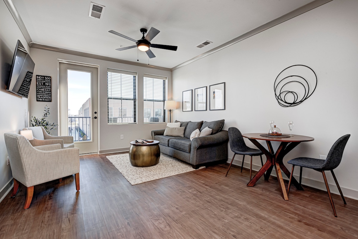 Experience elevated downtown living in this top-floor, fully furnished one-bedroom, one-bathroom condo in a beautifully renovated historic building. Located just four blocks north of Monument Circle and west of Mass Ave, you’ll enjoy both business and entertainment options. Relax with views of the Indiana Statehouse or explore nearby attractions like the Convention Center, IUPUI, Lucas Oil Stadium, and the Canal Walk in vibrant downtown Indianapolis.