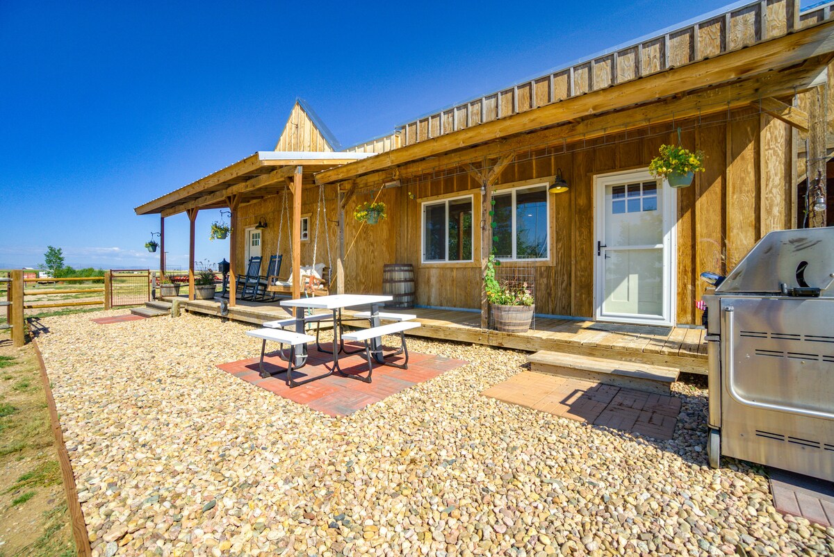 🐾 Cozy Western horsebox getaway! 1 queen bed, compost charming, attached outhouse/ camp port-a-potty, outdoor kitchen 🍳, hot outdoor shower 🚿! ✨ Rare! 2 pets stay free (more w/ approval, $10 each) 2 mi off I-25, 10 min to town, stores/dining 20%+ off longer stays! ❓ Guesthouse access *usually available* Social spot w/ 🛁 bath, 🚻 half-bath & kitchen. If this is a potential dealbreaker, ask via message. Games, firepits, horses, chickens & bees. Dirt roads & secret labyrinth to explore!