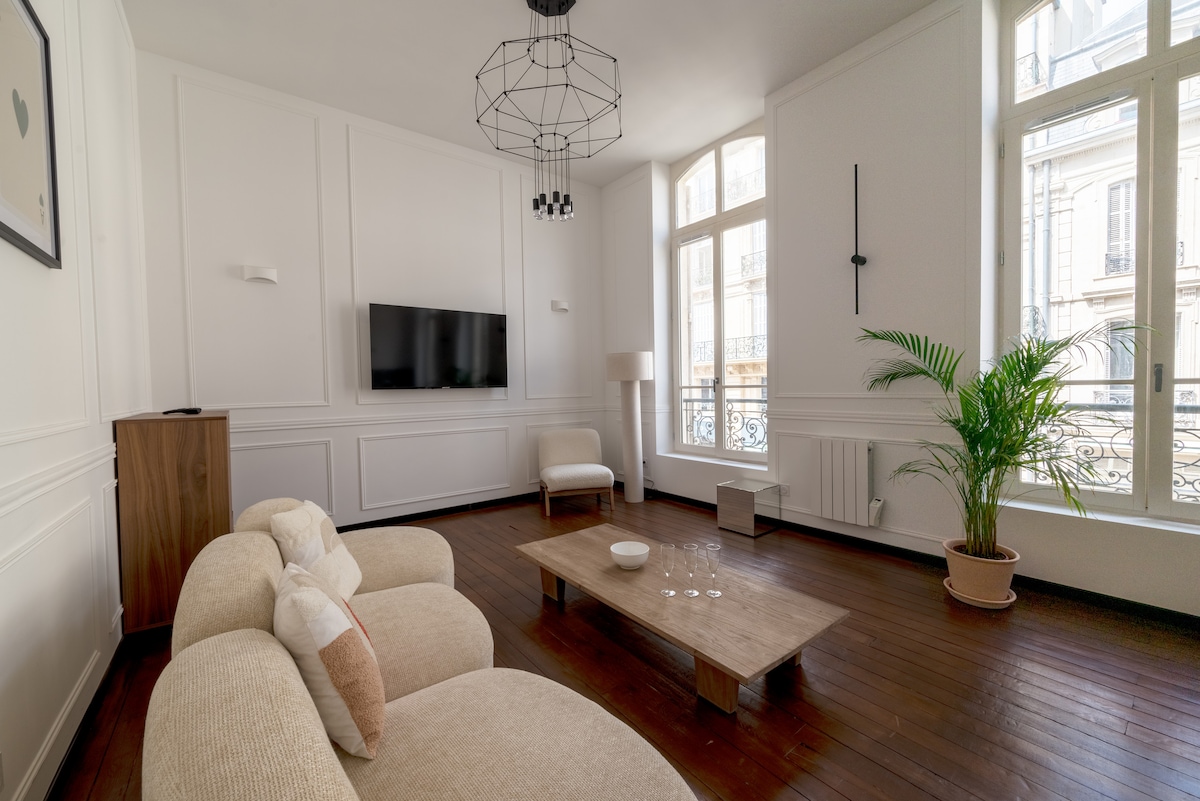 KRAFFT is a comfortable 79 m2 apartment, located in the hypercenter of Reims, accommodating up to 4 people. It is located on the 2nd floor of a small Reims building with only 3 apartments. Completely renovated, it consists of 2 bedrooms with high-end hotel bedding, a 29 m2 living room – TV – WFI, a fitted kitchen, a bathroom with the master bedroom, a shower room, a separate toilet. It is equipped with reversible air conditioning.