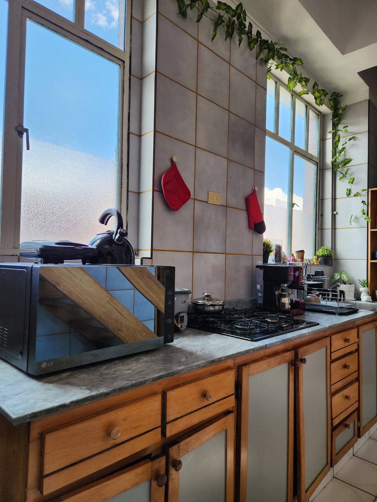 Taking into account the reception of the place, we opened this new space to the public with a spectacular view of the mountain, illuminated, airy, ideal for lovers of nature and birds. We are in front of the reserve of the Cerro de las Tres Cruces in the center of the city but surrounded by trees and a small water fountain. We have space for your vehicle, motorcycle or bicycle. We are plant and pet lovers. Very close you will find restaurants, bars and lots of fun.