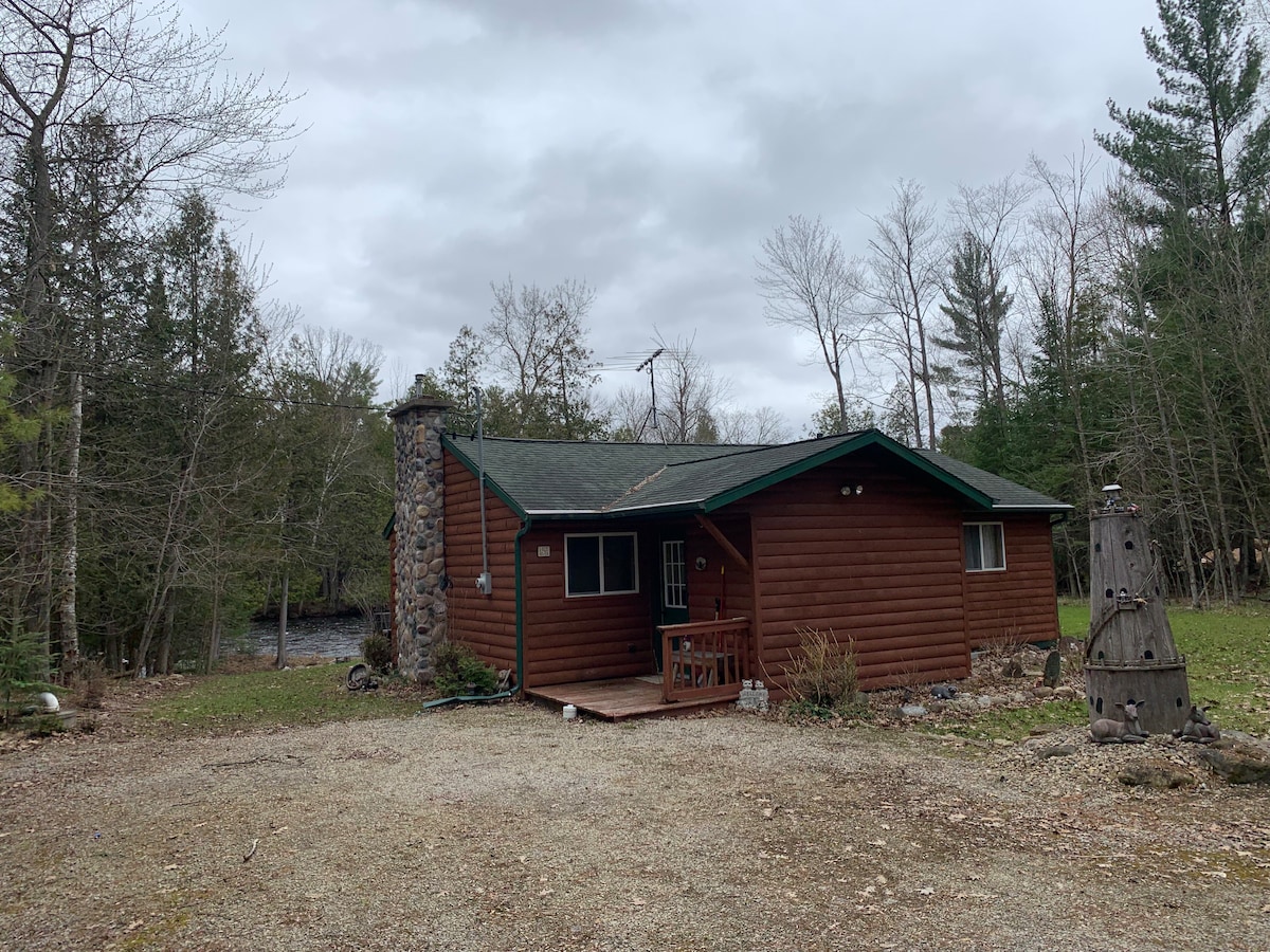 Welcome to Renee's Retreat! From the sound of rapids on the Oconto River within 150' of the cabin, to logs crackling on the camp fire next to the river, fishing for bass or trout, tubing or kayaking down the river (bring your own), watching wildlife, you will feel the fresh air in the Northwoods while staying here. Located on a wooded 2 acre lot with over 100' of river frontage, you will be able to unwind and enjoy nature while staying at my cozy 900 sq ft two bedroom log sided cabin.