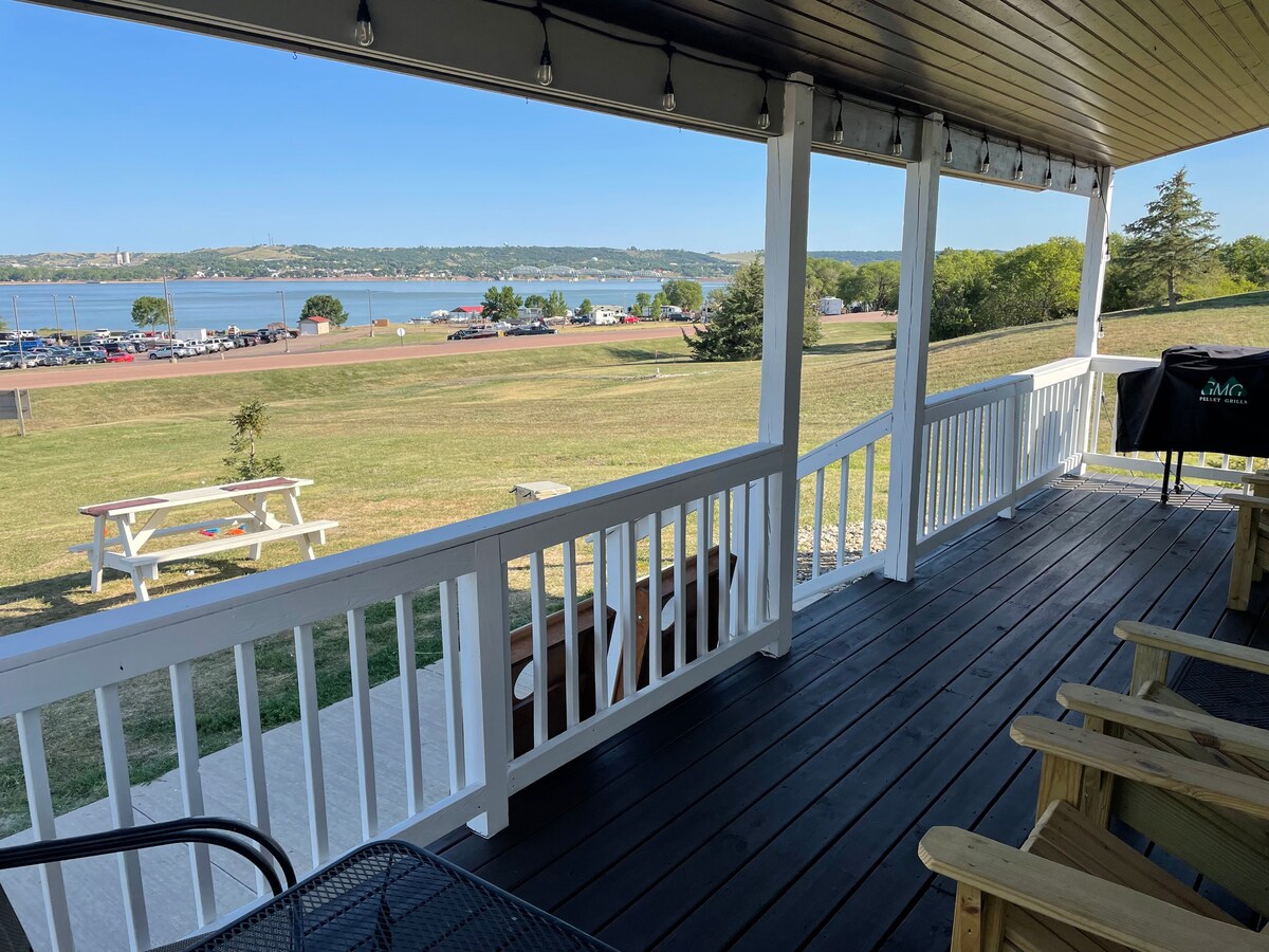 Gorgeous views of the Missouri River from the HUGE front porch!! The lodge can host up to 16 people with plenty of living and outdoor space to enjoy your stay. 4 bedrooms, 8 beds, 2 full baths and a beautiful, fully supplied kitchen and dining for 8. Great place for family gatherings, hunting, or fishing!! The lodge sits right across the street from the Cedar Shore Marina and boat ramp. There is a bike path across the street that extends for miles for you to enjoy views of the Missouri River.