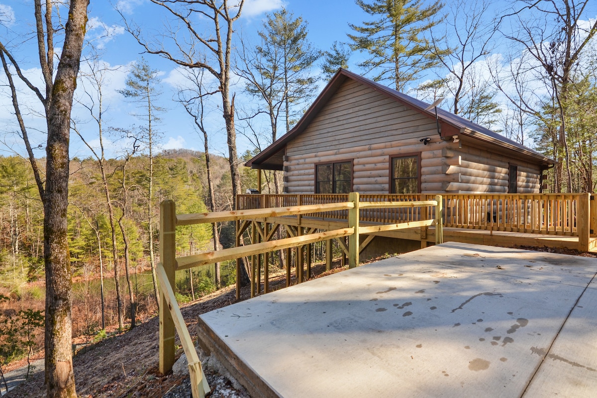 Riverfront cabin near Blue Ridge with hot tub, porch swing bed, fire pit, fireplace and 2 king beds on the Cartecay River across from 2000+ acre forest with hiking trails. Just over an hour from the Atlanta, GA or Chattanooga, TN airport and 5 min to downtown Ellijay or 30 min from downtown Blue Ridge. Wineries 10-15 min away! Fishing, kayaking, tubing, hiking, zip lining, biking, wineries/ vineyards, orchards, shopping and dining await you or just relax on the porch and listen to the river!