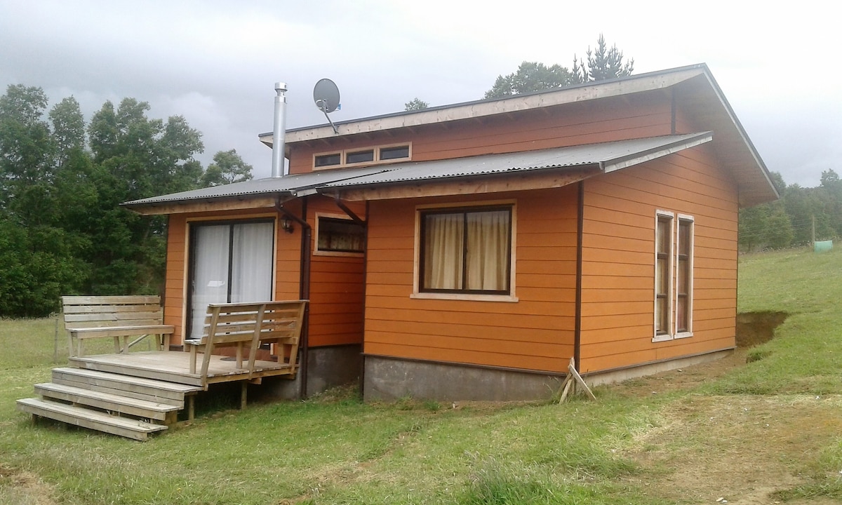 Well-lit cabin, with a simple but cheerful and cozy decoration, ready to welcome you and have a comforting rest, a pleasant view and a location that allows you to enjoy the attractions of the region but away from the traffic and noise of the city, 9 km from Licanray. Ideal for families who like to interact with nature, enjoy clear days and starry nights, rainy and windy times, hail in the heat of a wood-burning stove.