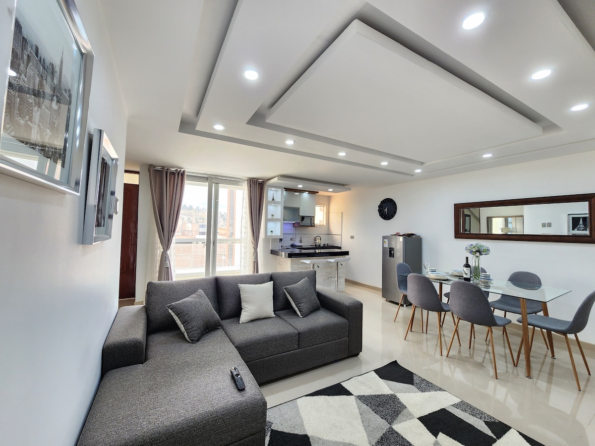 Beautiful and modern interior apartment (first level with 110 m2) fully equipped, ideal to relax with your partner and disconnect from the world. 4 min from Huancayo Bus Station, 4 min from Universidad Nacional del Centro del Perú, 5 min from EsSalud - Hospital Nacional Ramiro Prialé Prialé, 15 min from downtown. Located in a quiet, private and safe area, close to extensive green areas, parks, pharmacies, minimarkets, restaurants