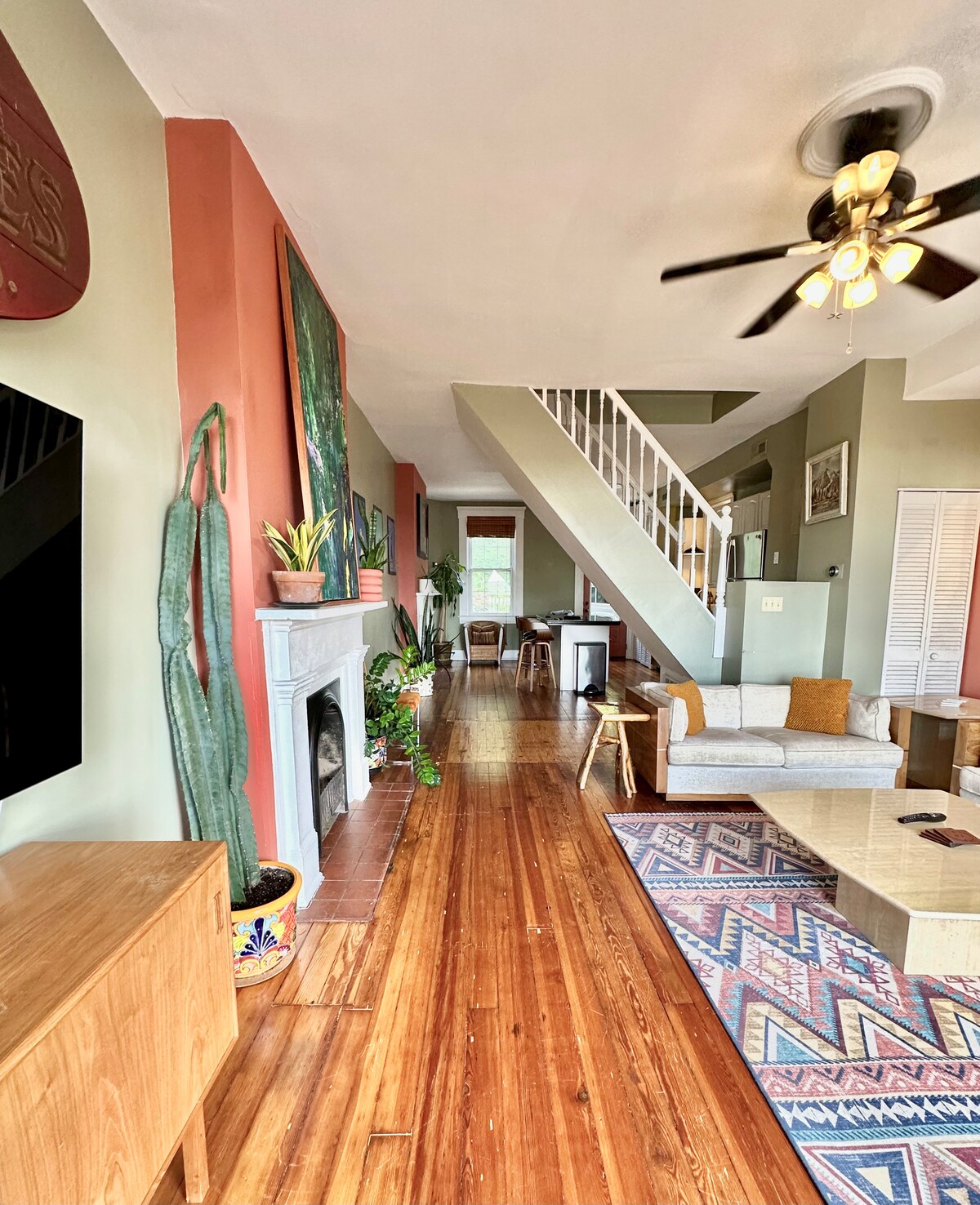 Loft style, street level unit across the street from historic Findlay Market. Stop 12 on the *FREE* Cincinnati Bell Connector. Sleeps 6. 1 king bed in the sleeping loft, 1 full size Murphy Bed, and 1 queen sleeper sofa, perfect for families! Walking distance to all the best spots in OTR, or take advantage of the full kitchen and shopping at Findlay Market. A wall of windows fills the unit with natural light as Solar Tint maintains privacy and 3M Film ensures safety.