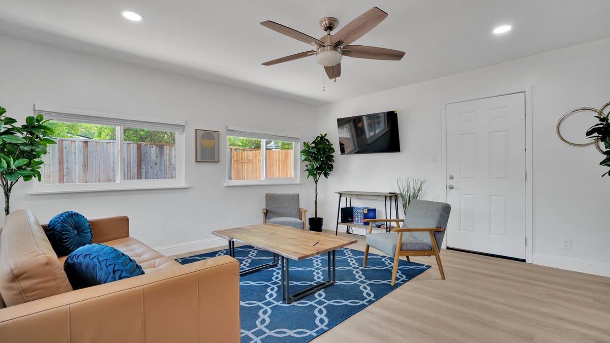Be the first to enjoy this oasis of a renovated guesthouse. 2bdrm / 1ba, kitchen & washer/dryer, centrally located to all your needs. Situated to the right, backside of main house to your own private entrance. 30 min to OAK. 60 min to SFO. 7 min to BART. 3 min to John Muir hospital. 15 min to Toyota /Concord Pavilion. Walking distance to downtown. Home right off the freeway HWY 4/680. Tucked away in an active yet quiet neighborhood. Come relax away from the hustle & bustle of Concord.