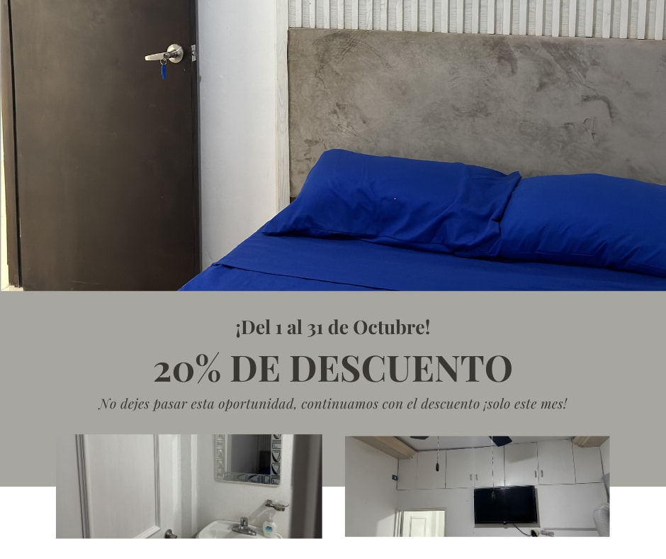 Habitación céntrica con 2 camas matrimoniales MTY