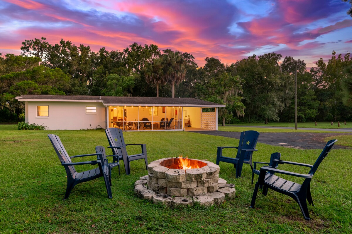 Get away from it all! Our tiny cottage (The Lilly) is available only. These 2 cottages are located on 1 acre. Each cottage features a fenced back yard. Nestled between the cottages is the court yard. Hot tub pending repair. Layout: Studio style, 2 Lofts- storage & lounge. Well water, star link internet, Roku . Bring your boat(s)/ sxs/ atvs. We are located 15 mins to Lake Rousseau, Gulf, Three Sisters Springs, & Rainbow River. In the country.