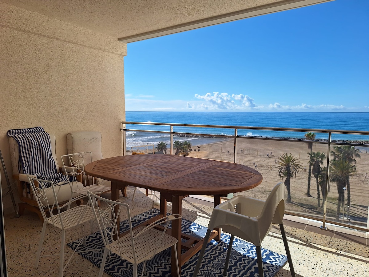 Apartamento tranquilo y muy luminoso con un gran balcón con vistas al mar. A 50 m. de la playa y a 100 m. de la estación de tren. Dispone de un salón comedor y una habitación totalmente equipados para relajarse delante del mar. Gran paseo marítimo de 15 km. para pasear, hacer running, ir en bicicleta, disfrutar de restaurantes... Solo para uno o dos viajeros adultos.