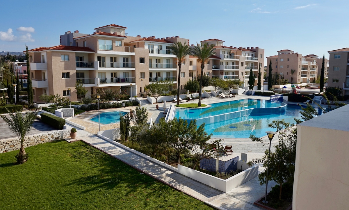 Located in the center of Paphos Town, Elysia Park features a pool with sun terrace amidst its landscaped gardens. It offers high quality self-catering accommodation in Paphos, Cyprus. Overlooking the pool, my apartment has a seating area with sofa and a kitchen with fridge and stove. It is equipped with air conditioning, a washing machine and an 55” LCD TV. The private bathroom comes with a bathtub and the other one inside the master bedroom with shower.