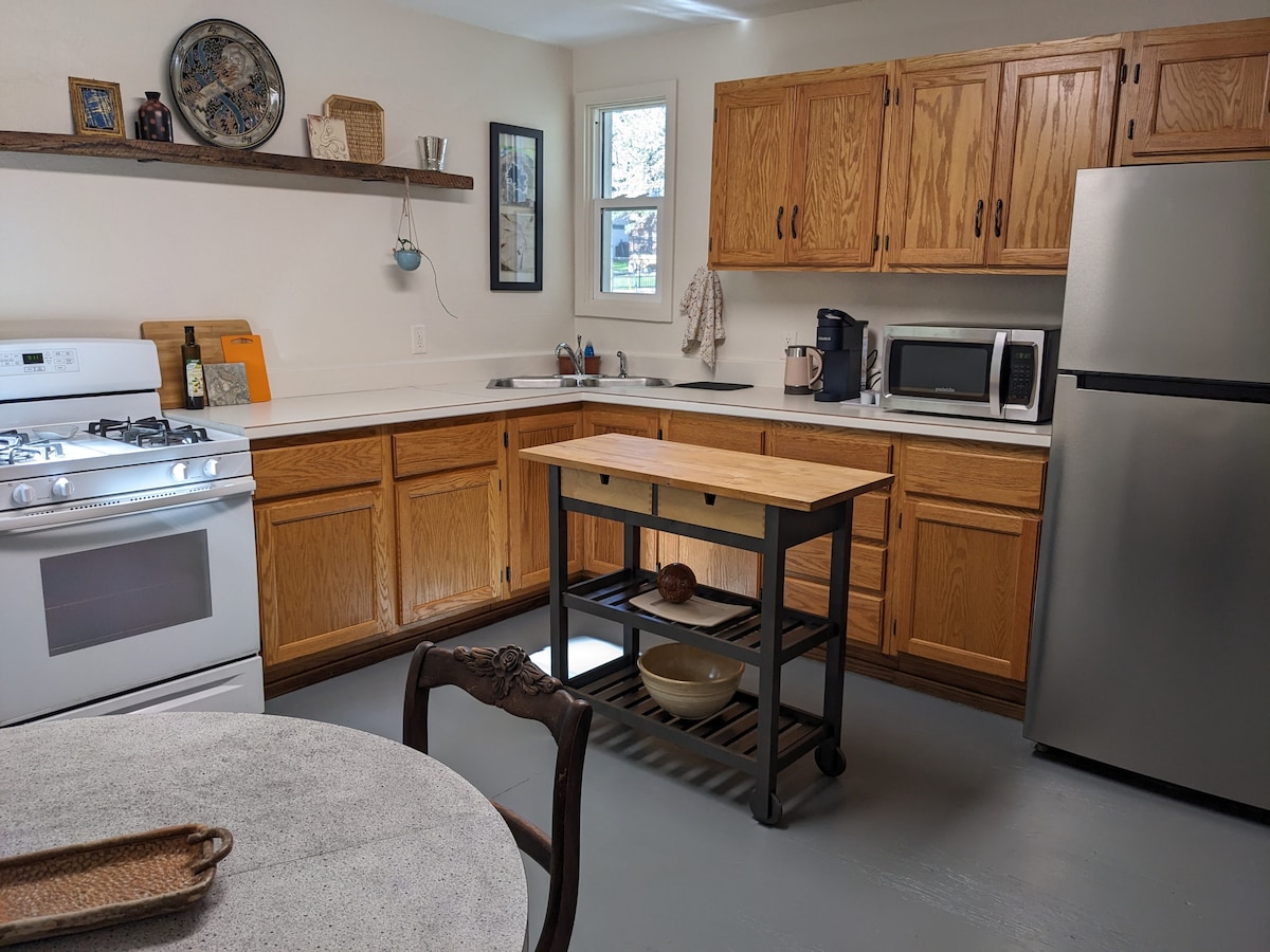 A private, peaceful space 2 blocks from St. Olaf College and less than 1 mile from downtown and Carleton College. Our location is convenient, cozy and unique being an old ginseng farm, the duplex has a rural feel and is tucked away from the street. Enjoy a patio space to grill at while soaking in the outdoors. We have a fully equipped kitchen, but the Ole Store, a Northfield favorite, is just down the block. Dogs are allowed when added on the reservation and pet fee has been paid for.