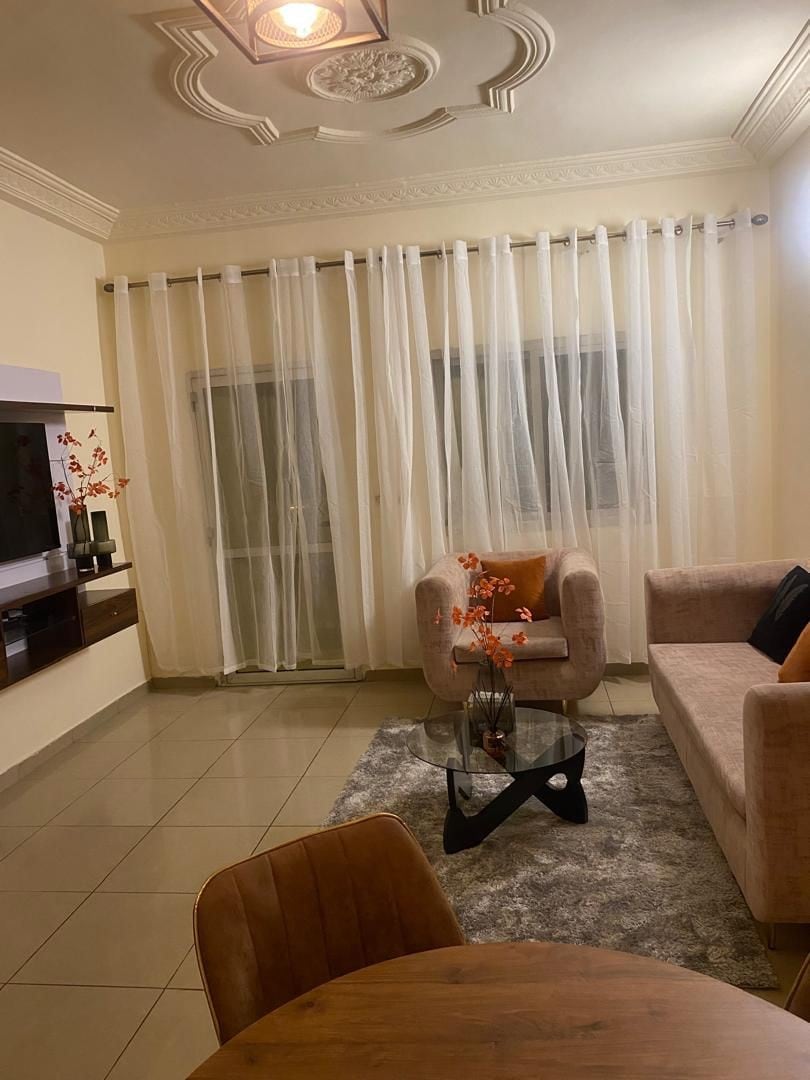 Elegantly renovated duplex, located in the heart of Cocody, 2 steps from the hotel Ivoire. Hyper accessible area with quick access to the Plateau, 3rd bridge, II Plateaux, Riviera. Spacious, bright, equipped with all modern amenities, the duplex has 3 bedrooms, 1 desk, 2 SDD, 1 garden, 1 terrace and 1 backyard that allow you to enjoy the outdoors at all hours. Quiet environment. Not suitable for partying. Cleaning is done twice a week.