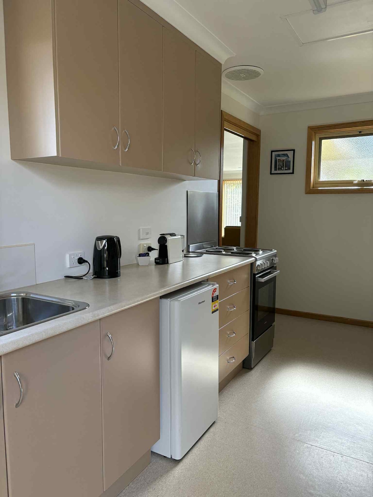 Private, self contained studio in a quiet but central part of Devonport. Facing north with a sliding door opening onto a private outdoor seating area. Also allowing the sun to warm the polished concrete floors of the studio . A comfy queen bed will provide guests with a good nights sleep. Ideal position for the city with great cafes, supermarkets and Hill Street IGA nearby. Just a short walk away to the Mersey River with its shared bike and walking path.