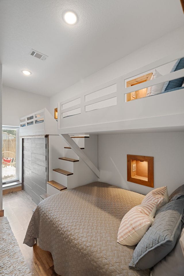 The Low Commotion sits right in the life of the Historic Depot District in old town Bay St. Louis. It features a train-inspired decor blending perfectly with its location across from the train depot. The master bedroom includes a queen bed with a private bathroom and access to the back porch. The additional bedroom boasts fun built-in bunk beds. It is near an active railroad. Watching the train pass and hearing the whistle is included for no extra fee!