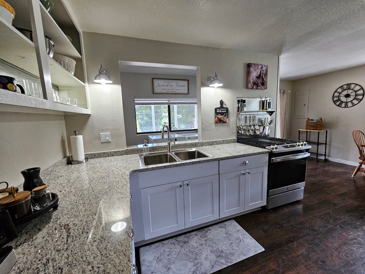 Entire 3 bedroom manufactured house. It is located on a 340 acre ranch. With your own fishing poles, fish in our private pond or bring a boat and fish in the Umpqua River. Only about an hour from mountain skiing or ocean beaches. Nestled at the base of the coastal mountains Property has many ponds that are landscaped with hundreds of ornamental trees. There is a pavillion with a gas fire pit and pellet grill.
