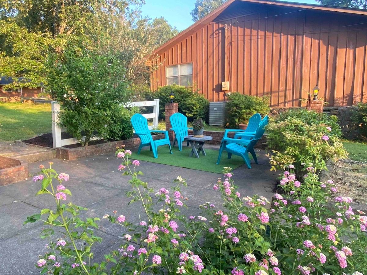 *Romantic Nature Escape* Escape to a tranquil oasis in nature, perfect for a romantic retreat! - Enjoy breathtaking sunsets on the covered front porch - Gather 'round the large fire pit for cozy nights under the stars - Relax in the fully fenced front and backyard areas, perfect for privacy and pets - Snuggle up by the electric fireplace for a warm and cozy ambiance - Unwind in the beautiful antique Clawfoot tub, perfect for a relaxing soak. -Beautiful Outdoor Shower for Two