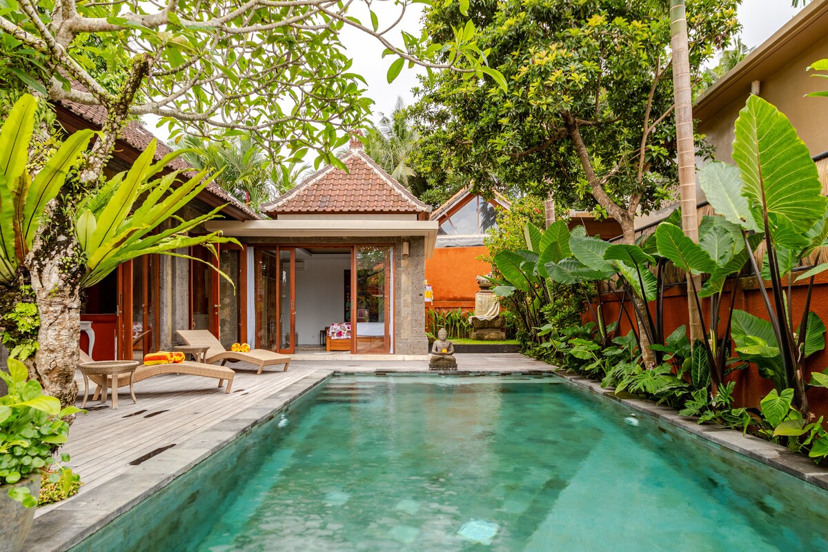 A hidden romantic sanctuary where space, serenity & nature blend beautifully. Tucked away in a peaceful corner yet only 5 minutes ride to Ubud Center, this expansive private villa offers the perfect balance between seclusion & convenience. For couples & honeymooners, features a dreamy outdoor bathtub set in nature, infinity pool overlooking lush greenery. An eco-friendly concept, the villa embraces natural materials, open airflow & tropical gardens that create a calming, breathable atmosphere